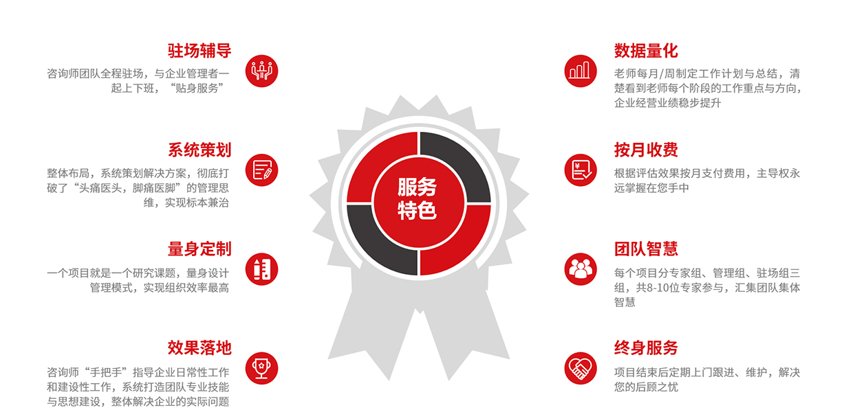 駐場實(shí)施:“一對(duì)一”駐場式服務(wù),參與管理,標(biāo)本兼治。